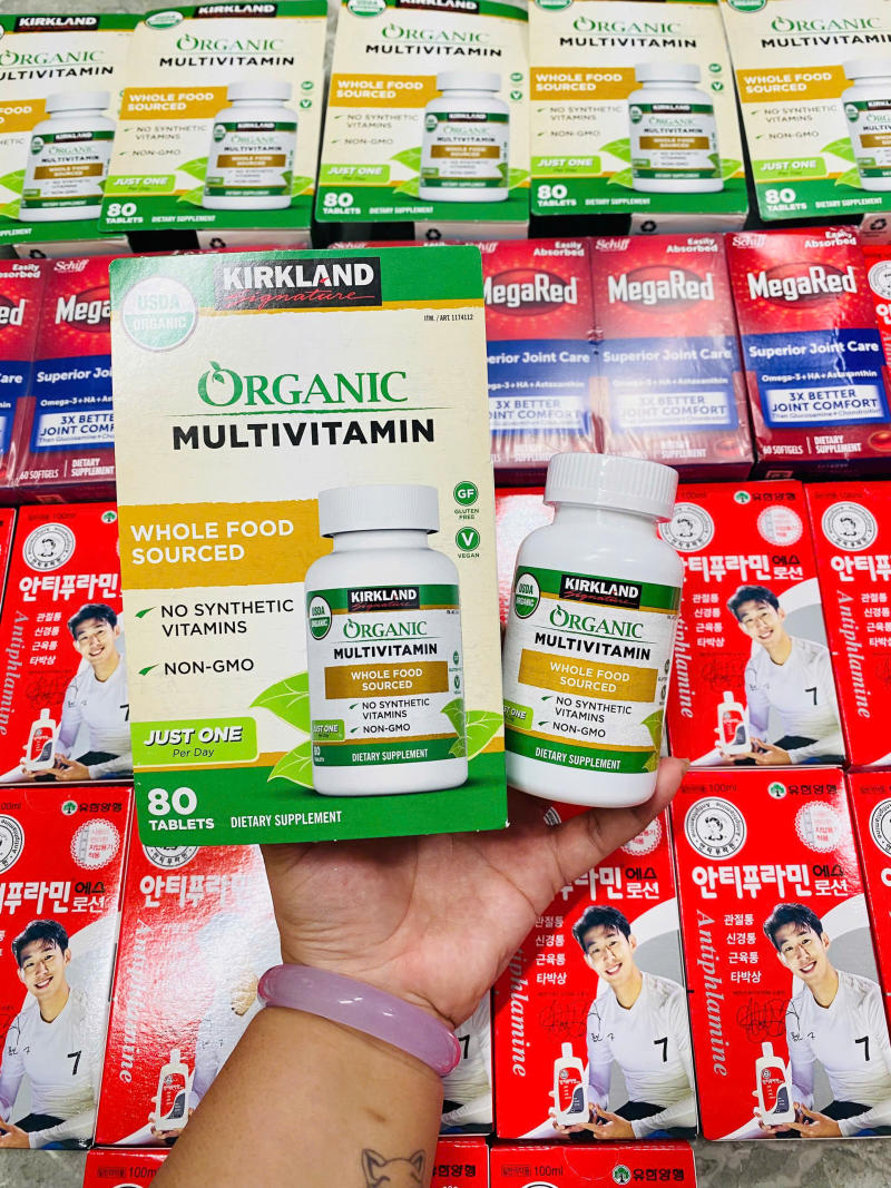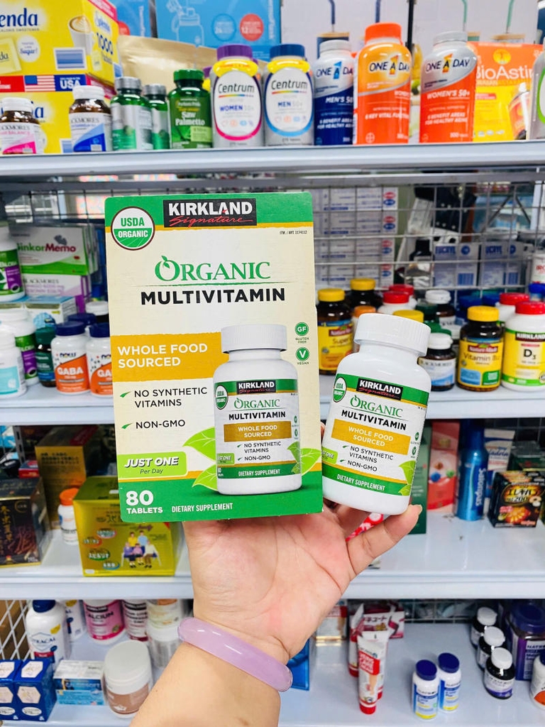 Kirkland Organic Multivitamin là viên uống bổ sung vitamin tổng hợp hữu cơ cao cấp đến từ thương hiệu Kirkland Signature (Mỹ). Sản phẩm được chiết xuất hoàn toàn từ thực vật thuần chay, đạt chứng nhận hữu cơ USDA, không biến đổi gen, không chất bảo quản, không phụ gia hóa học. Đây là lựa chọn lý tưởng giúp tăng cường sức khỏe toàn diện, đặc biệt phù hợp với người có lối sống lành mạnh và ăn uống thiếu hụt vi chất.