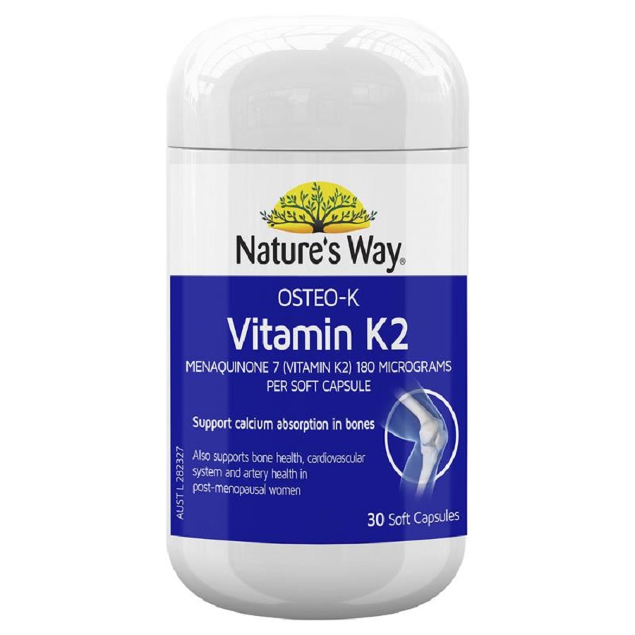 Viên uống Vitamin K và Calcium Nature’s Way Osteo-K Calcium & K2 có tác dụng giảm nguy cơ loãng xương và tăng cường sức khỏe cũng như độ cứng cáp của xương.
