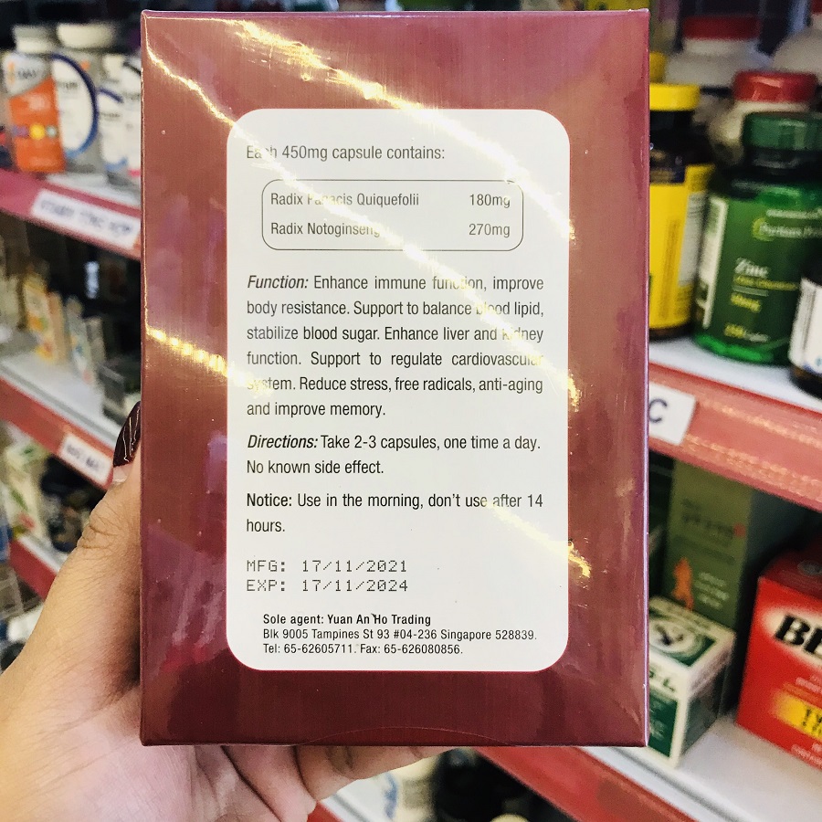 Tây dương sâm 180mg, tam thất 270mg.