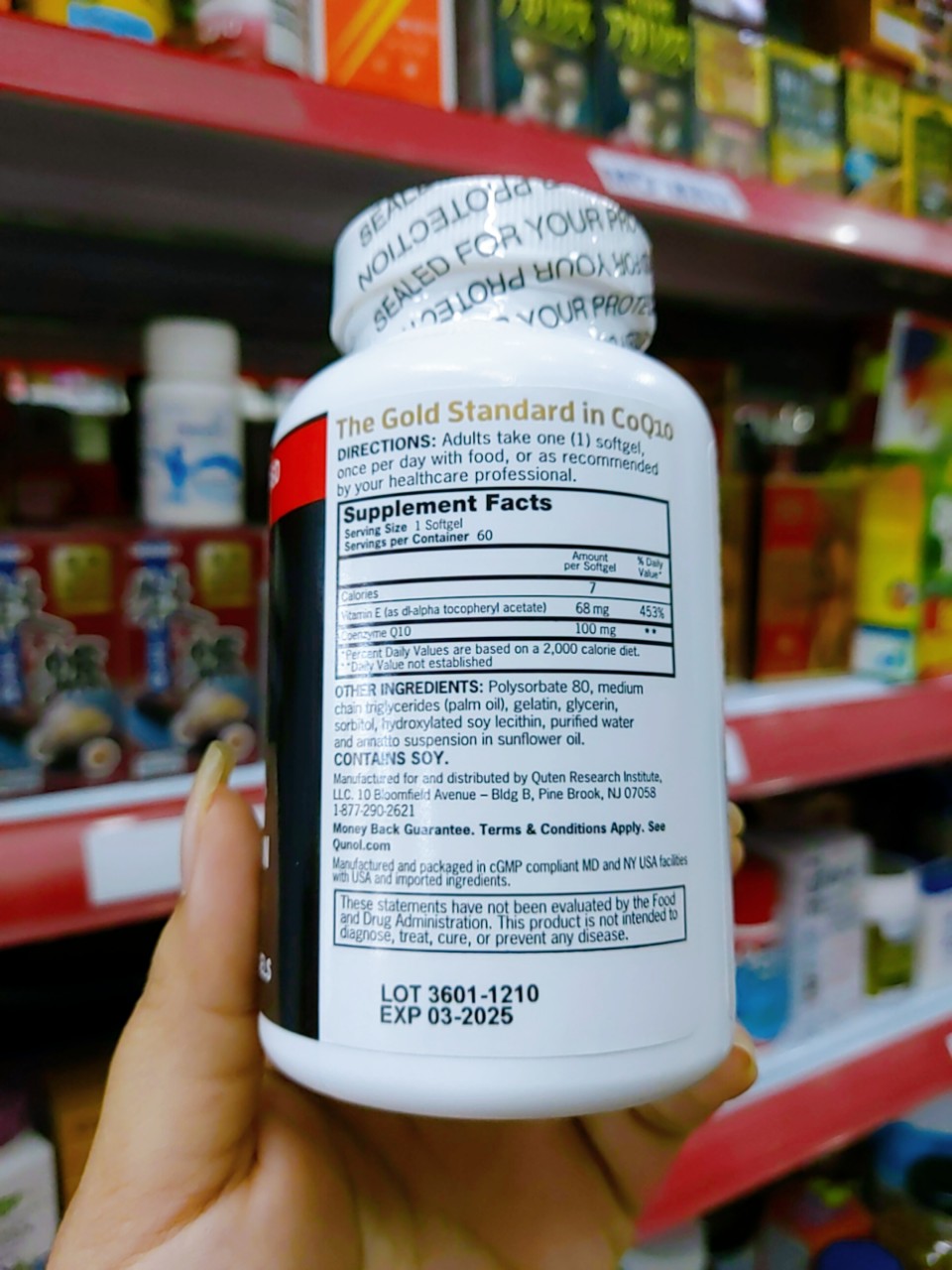 Thành phần của viên uống Qunol Ultra CoQ10 100mg Mỗi viên chứa: Vitamin E, 150 IU Coenzyme Q10 (Ubiquinone USP Grade) 100 mg