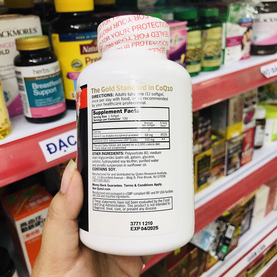 Thành phần của viên uống Qunol Ultra CoQ10 100mg Mỗi viên chứa: Vitamin E, 150 IU Coenzyme Q10 (Ubiquinone USP Grade) 100 mg