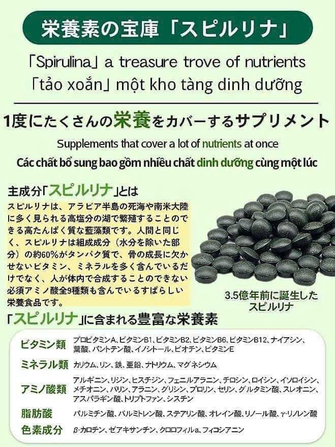 – Các vitamin có trong tảo biển spirulina giúp tăng cường hệ miễn dịch, phòng ngừa bệnh tật đồng thời chống suy dinh dưỡng hiệu quả.
