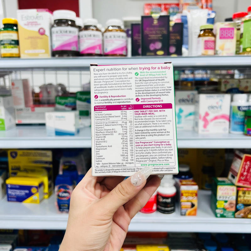 Viên uống Pregnacare Before Conception là sản phẩm đến từ Pregnacare - nhãn hiệu thực phẩm chức năng dành cho bà bầu nổi tiếng Vương quốc Anh, trực thuộc Vitabiotics, công ty dinh dưỡng của Anh chuyên cung cấp thực phẩm bổ sung vitamin và khoáng chất cho nhiều đối tượng người dùng khác nhau, bao gồm trẻ sơ sinh, trẻ nhỏ và phụ nữ trong thời gian mang thai. Sản phẩm không chỉ được nhiều phụ nữ Anh Quốc yêu thích sử dụng mà còn