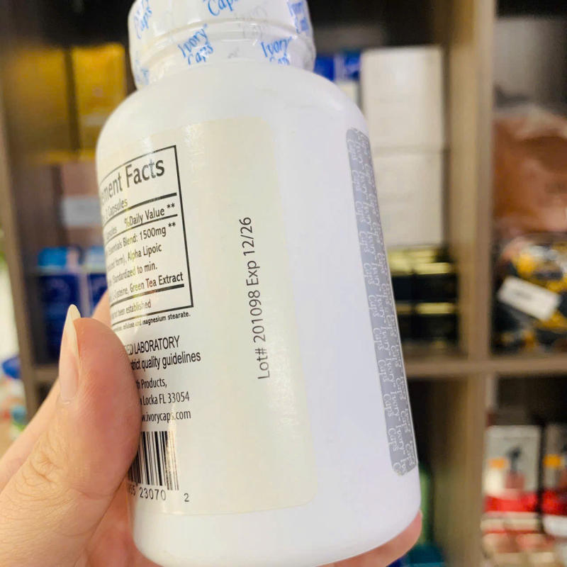 - Công thức độc quyền điều trị sáng da liều cao: 1500mg ** Glutathione, Alpha Lipoic Acid, Milk Thistle ( Silymarin), L-cysteine, Green Tea Extract - Các thành phần khác: hypermellose, cellulose và magnesium stearate…