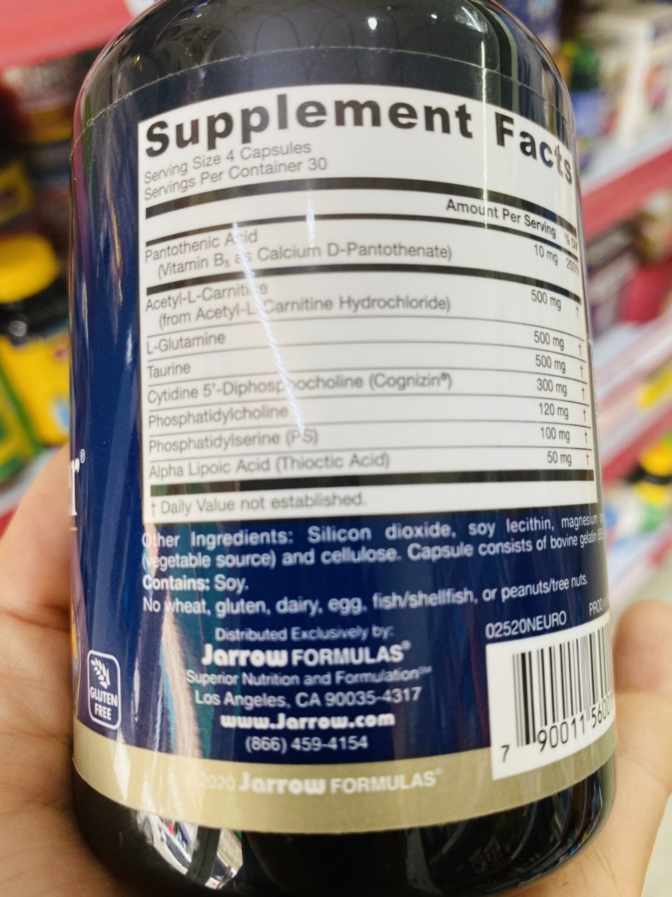 ✔ Viên uống bổ não Jarrow Neuro Optimizer tăng năng lượng cho não bộ, tăng quá trình trao đổi chất