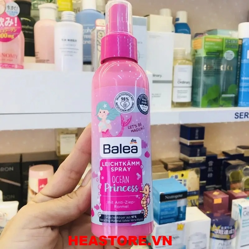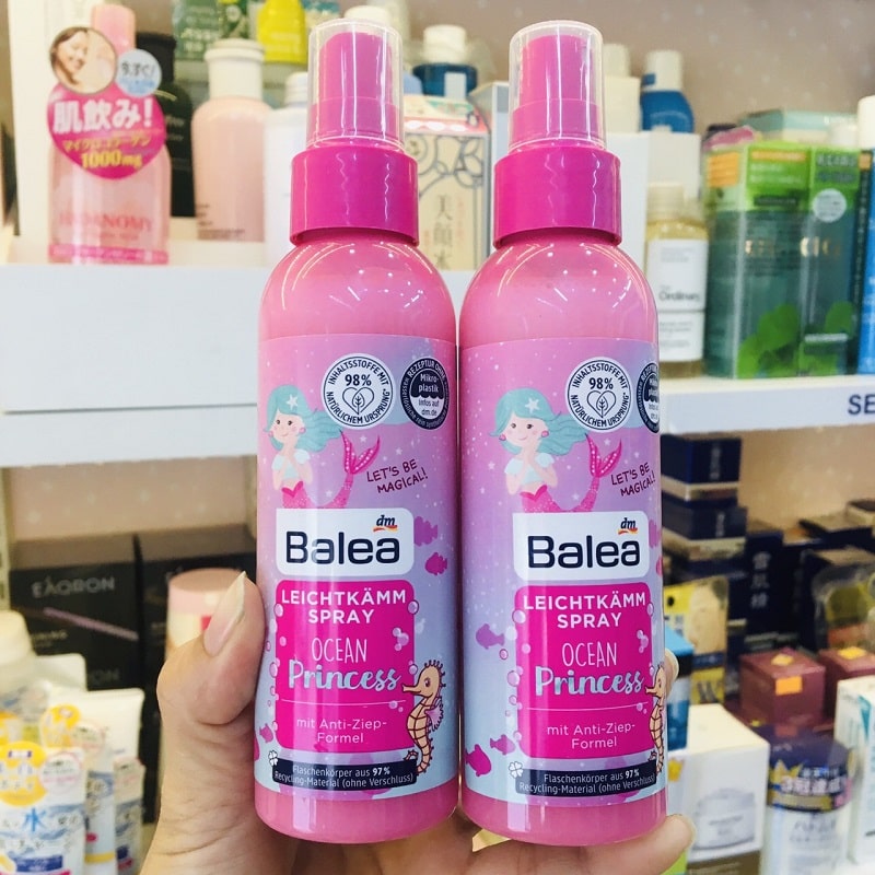 Xịt chải tóc công chúa Balea Ocean Princess với công thức chống rối, chống bết rít tóc, dễ chải, dễ dàng tạo kiểu cho mái tóc bồng bềnh của nàng công chúa. Sử dụng được cả cho tóc khô và tóc ướt. Hương thơm trái cây ngọt ngào cùng thiết kế bao bì xinh xắn các bé rất thích. Công thức không chứa cồn, không có vi nhựa và polyme tổng hợp hoàn toàn, hòa tan trong nước. Thành phần thuần chay từ thực vật an toàn cho bé.
