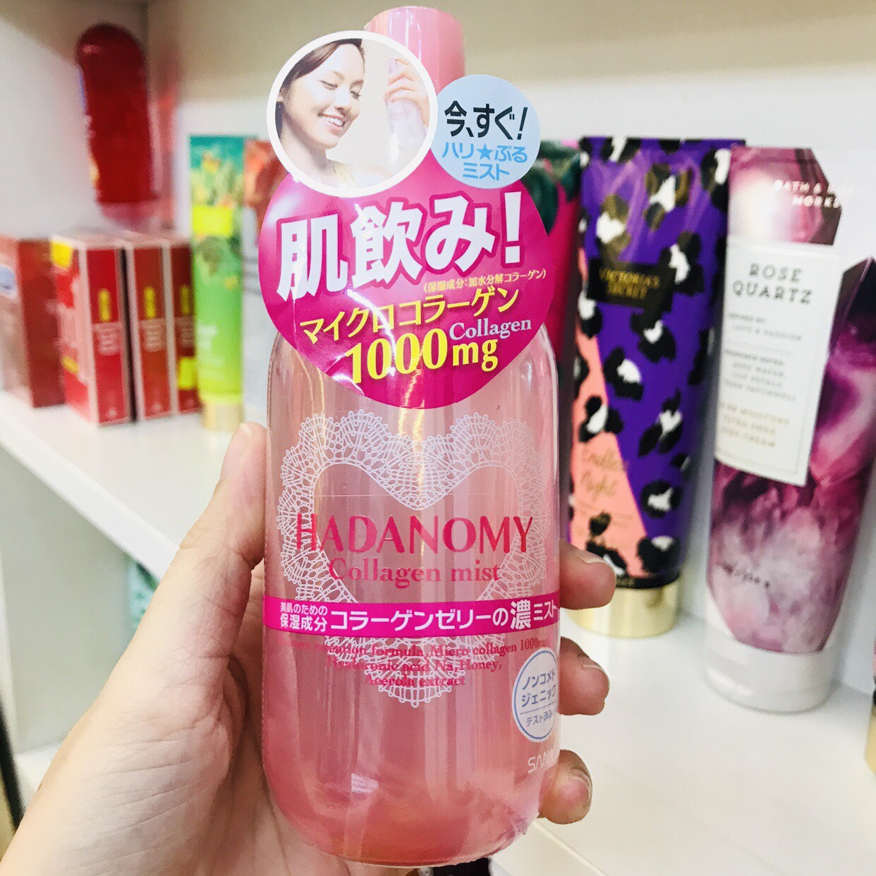 - Collagen Mist của HADANOMY Nhật Bản với Collagen có trọng lượng phân tử cực nhỏ nên được hấp thu một cách dễ dàng, nhanh chóng và trọn vẹn. Collagen được tổng hợp từ bên trong cơ thể giúp duy trì và tái tạo cấu trúc da mạnh mẽ và lâu dài. Sau một tháng sử dụng, làn da của bạn sẽ trở nên săn chắc, láng mịn và tươi trẻ.
