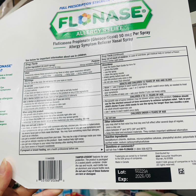 Tên sản phẩm: Flonase Allergy Relief Nasal Spray 50mcg